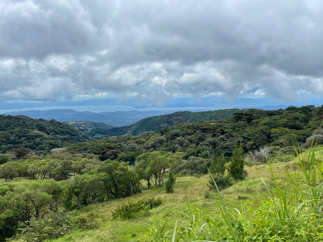 But by far my favorite place to be is “at the benches.” About a 15-minute walk away are a series of benches that look out toward the southwest, down the mountain and across the valley to the Pacific waters of the Gulf of Nicoya and to the Nicoya Peninsula across the way. The view changes every day. The sunsets there are spectacular. The expanse of creation just takes your breath away and recharges the spirit. We go there often and just lose ourselves in the wonder and beauty.